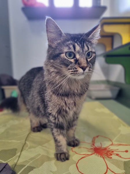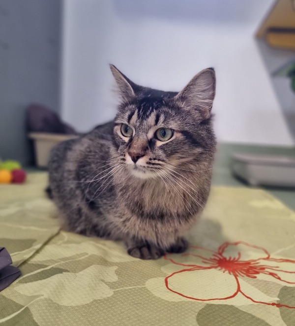 While Ester has a high energy level and can be easily aroused, she may not be the best fit for a home with small children - she would thrive in a calm, patient household, ideally with someone who has prior cat experience and can read her cues effectively.