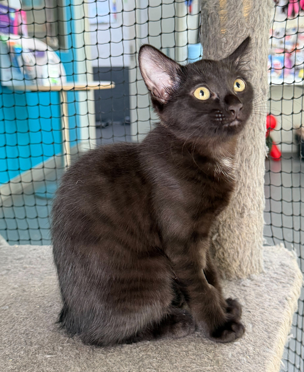 I came to the RSPCA as a 3 day old kitten in a litter of 5 with my mother. Unfortunately she didn't have much milk to feed us so we needed special care in foster. Unlike my tabby siblings, I was the black beauty in the group.