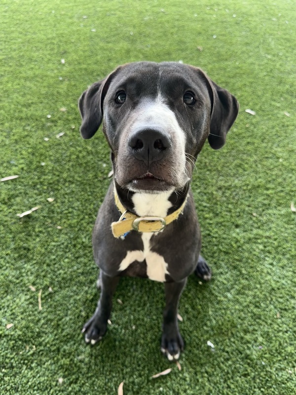 He's a smart pup who already knows "sit" and is very food-motivated, which makes training fun! However, he's still working on his manners and impulse control-he can get a little overexcited and snatchy with treats. Enrichment activities and puzzle feeders will be great tools to keep his mind busy and help him learn polite behaviors.