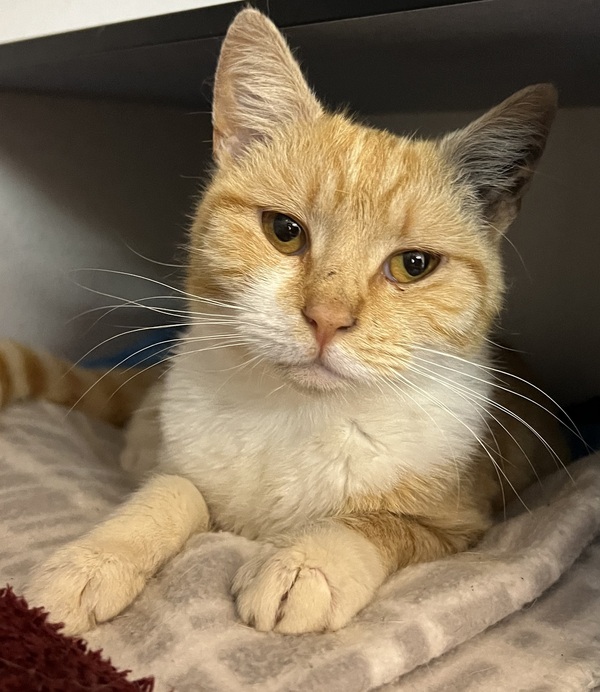 Vesper is a strikingly pretty girl with a soft cream, ginger tabby and white coat, paired with stunning golden eyes that catch the light-and your heart. She's ready to leave shelter life behind and bring her beauty, charm, and true cat personality into the home of one very lucky adopter. Vesper has all the grace and mystery you'd expect from a classic feline companion. She'll thrive in a calm, loving environment where she can settle in at her own pace and let her affectionate side shine. Whether she's lounging in a sunny spot, exploring her space, or quietly observing her world, Vesper adds a touch of elegance wherever she goes.