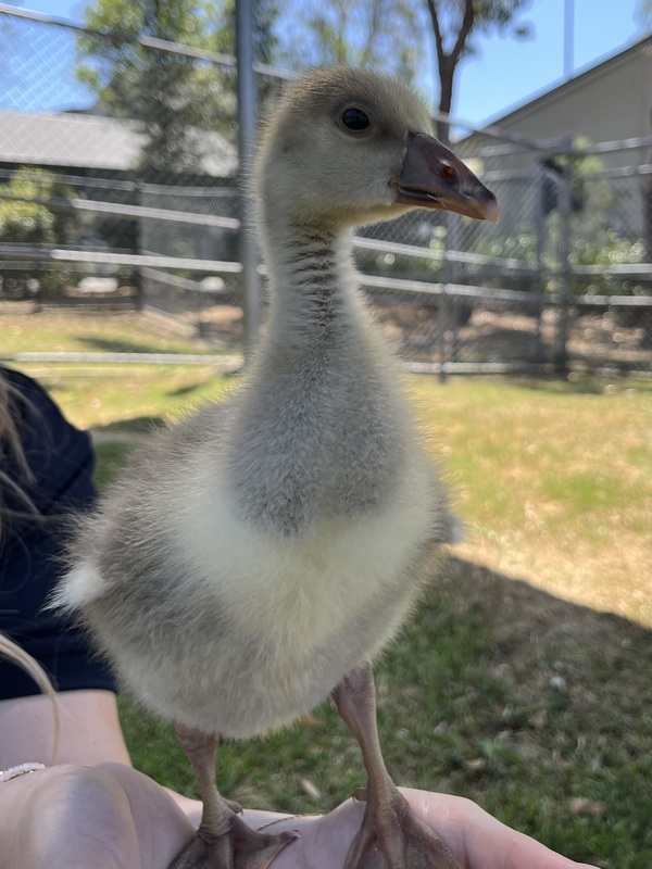 Ryan Gosling is a curious, cuddly little gosling with a lot to say! Full of personality and always exploring, he loves following his humans, splashing in water, and chirping his little heart away. He'll need a home with other waterfowl or someone who can spend lots of time with him.