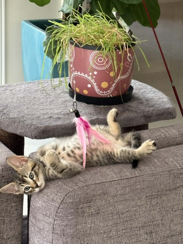 Louie is a cheeky little boy bursting with kitten antics and playful energy. He's ready to leave his siblings behind and start his own adventure in a caring, loving household. With his curious nature and lively personality, Louie will bring joy, fun, and plenty of entertainment to his new family.