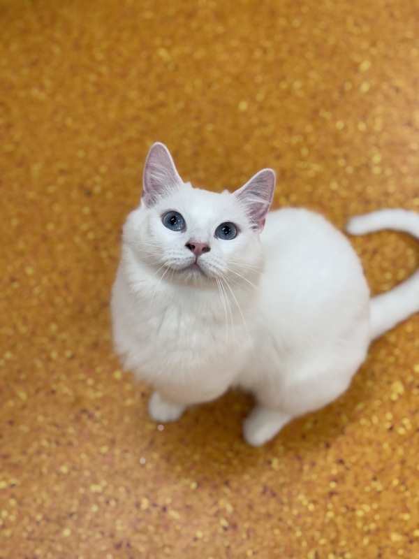 Marshmallow is a sweet, gentle soul who's looking for a calm and patient home where he can truly shine. When first arriving in care, Marshmallow was quite shy, but with time and kindness he's blossomed into a loving cat who enjoys gentle cheek rubs and quiet companionship.