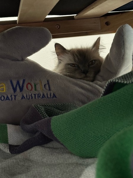 Coco is a sensitive soul who needs a gentle start in her new home. She can feel overwhelmed in large, open spaces, so beginning in a small launch room and giving her time to settle is key. With patience and understanding, Coco will slowly reveal her sweet nature. She loves soft chin and cheek scratches and will reward your kindness with gentle blinks and affectionate lean-ins once she feels safe.