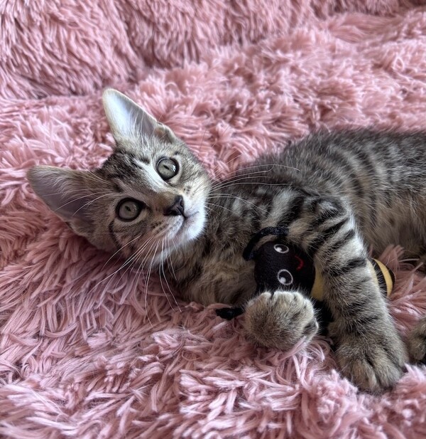 He especially loves playing with rattle mice and wand toys, and his playful antics are endlessly entertaining. Buzz is a total pleasure to be around, combining affection, energy, and a cheeky sense of fun that will keep his humans smiling.