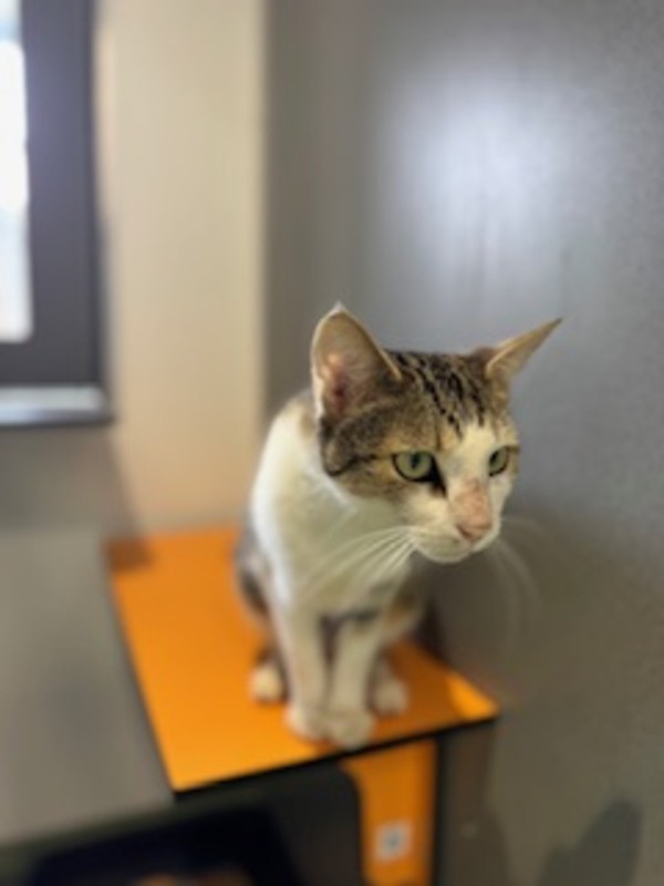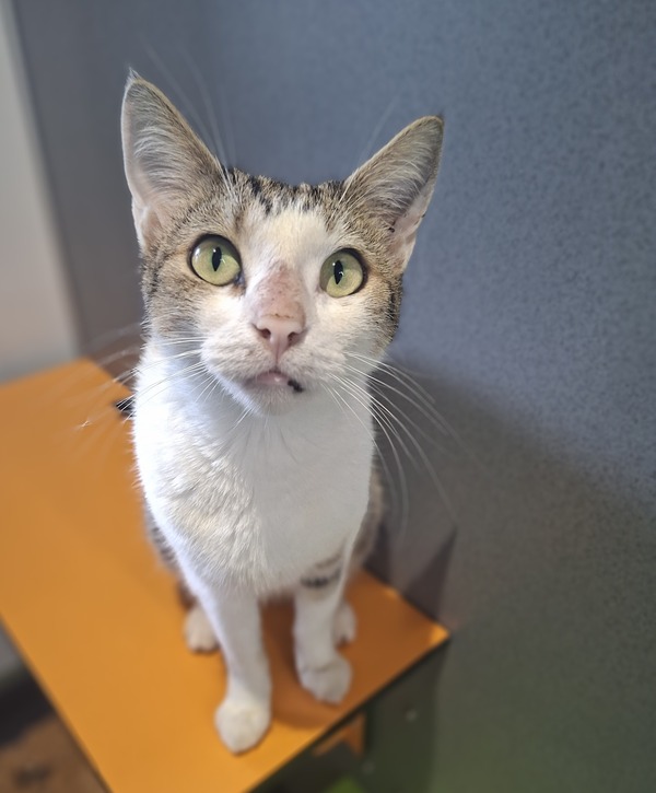 Frida is a super sweet little lady who knows exactly how to win hearts. She will happily solicit pets, offer gentle head bunts, and enjoys the comfort of a full-body pet.