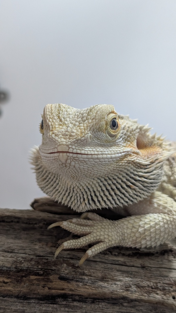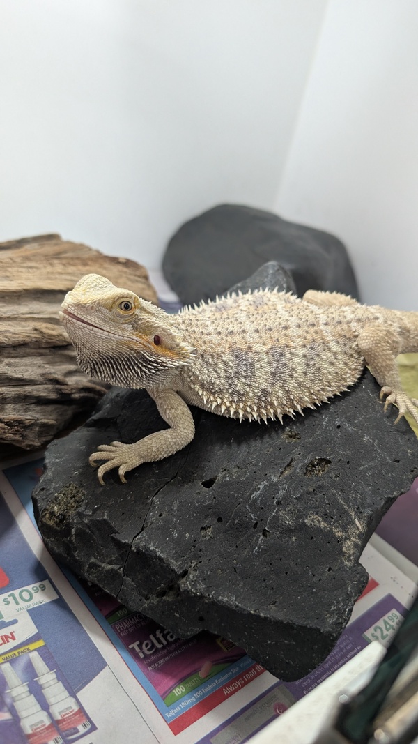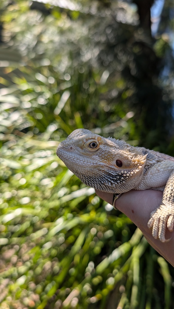 My favourite activities are sunbaking and eating! Due to my history before coming to RSPCA, I have a huge love for my food and can often be a bit overzealous with fake plants and sometimes fingers - I'm working on it but don't grab me too quick and we should be good. I am still getting used to handling and given my history I will need continued practice and patience.