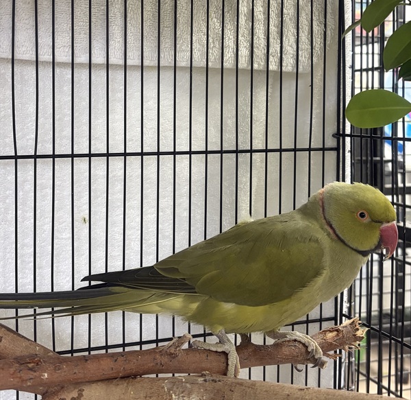 Hey there, I'm Mochi, a gorgeous green-coloured Mallee Ringneck Parrot. I'm a goofy kinda bird, but in a loving way. I like to whistle away in the early morning and again in the evenings. But wait! There's more! I'm a chatterbox: I say: "what are you doing?" and "step up" and I'm friendly and attention-seeking, although I do startle easily. I take sunflower seed treats from your hand. That aside, I'm otherwise as quiet as a church mouse most of the time. I'd make a wonderful and colourful addition to your family. Would you like me to brighten your life with my presence? It would be no problem whatsoever. So, if you think your life is incomplete without a Ringneck Parrot, then come on down to the RSPCA at Wacol and ask for Mochi.