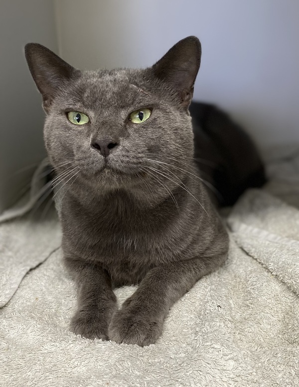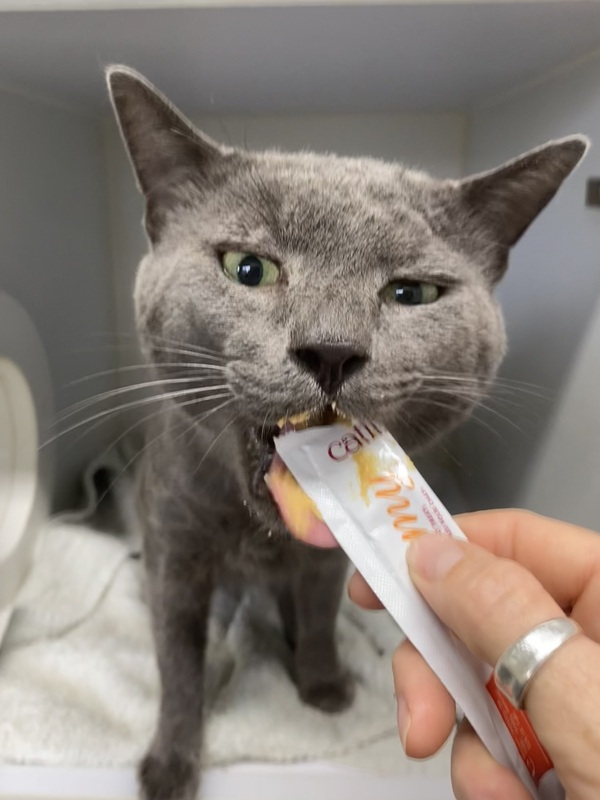 Meet Ramsey! With his soft soul and striking green eyes, Ramsey has a way of melting hearts in an instant. He's a gentle, easygoing boy who adores the simple pleasures in life, sunny windowsills, quiet moments, and of course, food. The true key to Ramsey's heart is through treats, especially anything puréed!