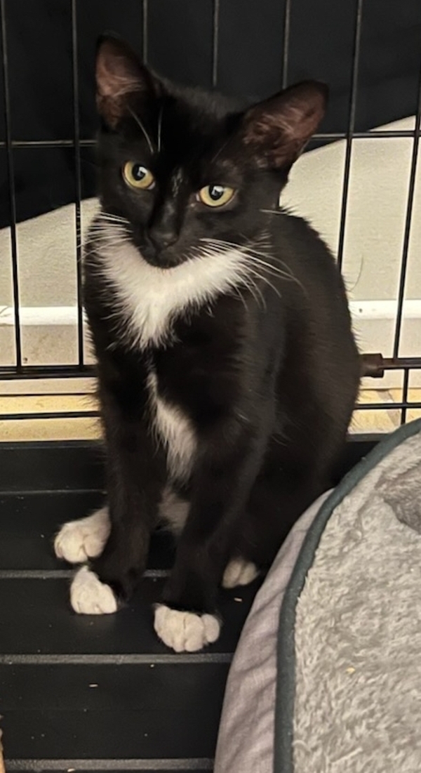 Melodie is a striking black‑and‑white domestic short hair with soft features and an even softer heart. When she first arrived in care, she was timid and unsure of the world around her. But with patience, kindness, and a lot of gentle encouragement, she has slowly let her walls come down.