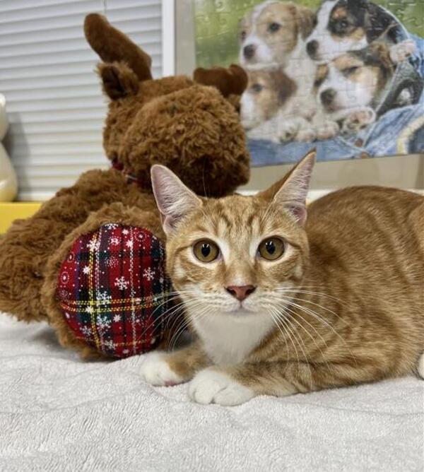 I came into care with my kitten friend and didn't get much early social time, so I'm still building my confidence-but if you're willing to be patient with me, I'll be your soft, loving little companion in no time!