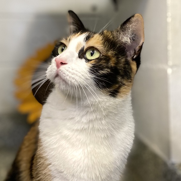 Please stop scrolling right here! We have the perfect cat for you wrapped up in a cuddly, affectionate bundle of fur. On the outside, Izzy is a glorious calico-coloured feline in tones of white, black and tortoiseshell. Her eyes are a yellowish-green colour and they love to make contact with your eyes. On the inside, Izzy's nature is cuddly and affectionate, meaning she wants you to be her friend. You'll find that when she becomes your companion in your home, there she'll be, looking at you, waiting for attention. Please read our important details for her care:-