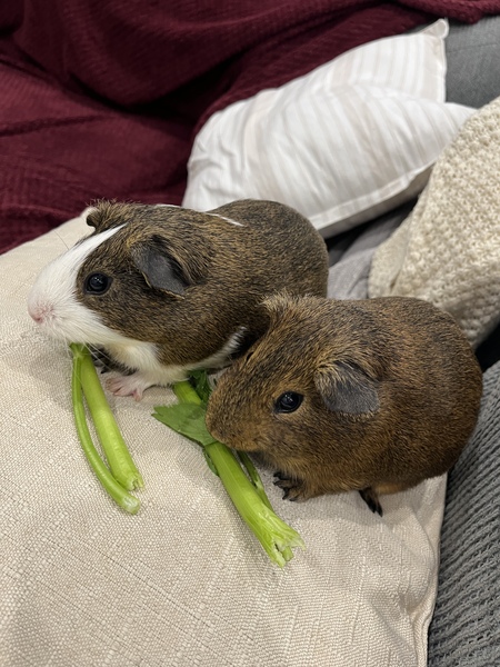 As with all guinea pigs, they will thrive in a calm household where they can feel safe, supported, and able to enjoy the routine of daily care.