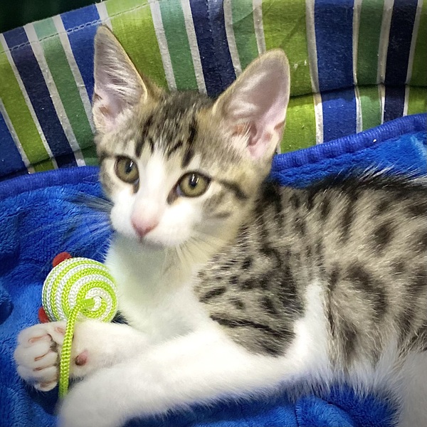 Woozles is a very handsome little kitten, who just adores having cuddles and playing, in equal measures. Woozles will climb all over you and snuggle into you. He seems to never have enough of your affection. His coat is out-of-this-world soft with brown tabby patches and white fur. And we can't forget to mention his delicate, pink nose and his eyeliner! You will instantly fall in love with this fellow. Please remember these necessities:-