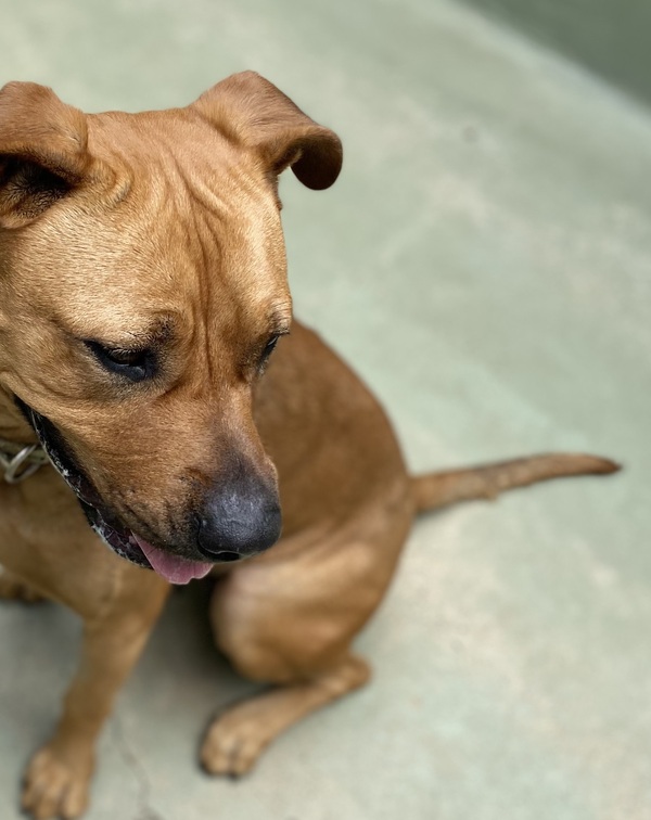 Lucky has that buzzy staffy energy, but she also settles well in her pen after her morning walk. She enjoys both physical & mental enrichment such as food puzzles & frozen kongs.