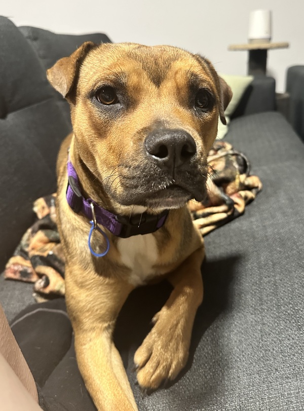 Mia is a sweet, affectionate staffy who would love nothing more than to snuggle up on the couch with you and be apart of the family.