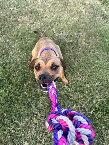 This playful pup is ready for a fresh start in life and would love to spend her time as your little shadow.