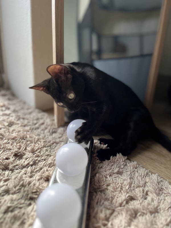 and I'm the little black whirlwind you've been waiting to meet! I'm a sleek all‑black girl with endless energy-I play hard, run fast, and can turn just about anything into a toy. If you're looking for a kitten who brings life, laughter, and a whole lot of zoomies into your home, I'm your girl.