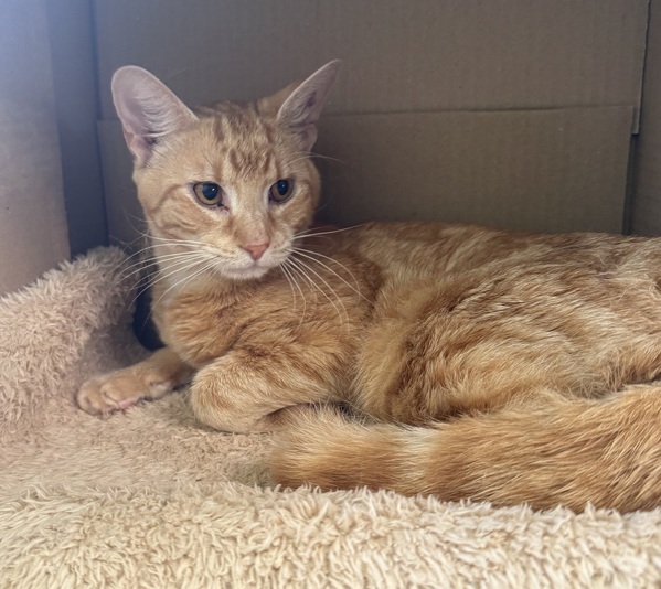 Meet Cardamom, a gentle ginger boy with a heart full of sweetness and a shy streak that makes him all the more endearing. He may take a moment to warm up, but offer him a few chin and cheek scratches and he'll quickly show his affectionate side. Cardamom is well‑suited to an adopter who has an understanding of cat body language and can provide a quiet, low‑foot‑traffic home where he can settle in at his own pace, with lots of hidey holes to make his own. He would be best suited to older, respectful children and may also do well with a feline friend, pending slow and careful introductions. With patience, gentleness, and plenty of love, Cardamom will blossom into a devoted and loving companion :)