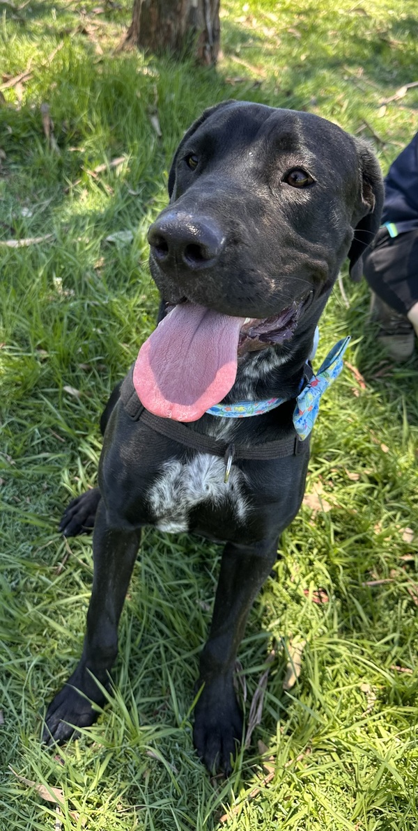 He is a very affectionate boy who enjoys leaning into you for attention and reassurance. When over-aroused he can become jumpy or mouthy, so ongoing work around calm behaviours and keeping all four paws on the floor will be important.