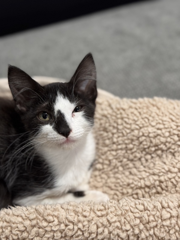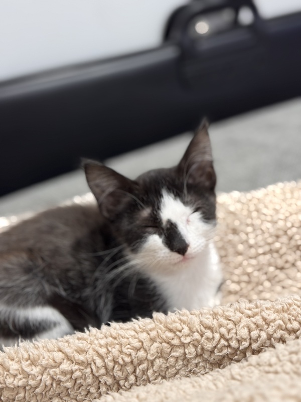 I love to sleep snuggled right beside you, and I'll happily spend all day being your shadow. I've got the softest, quietest little meow - almost a whisper - but my purr is incredibly loud, like a tiny motor revving with happiness.