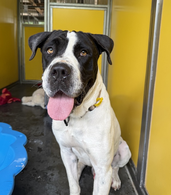 Mambo is a sweet, sensitive gentle giant and enjoys staying close and leaning in for gentle affection once he feels safe.