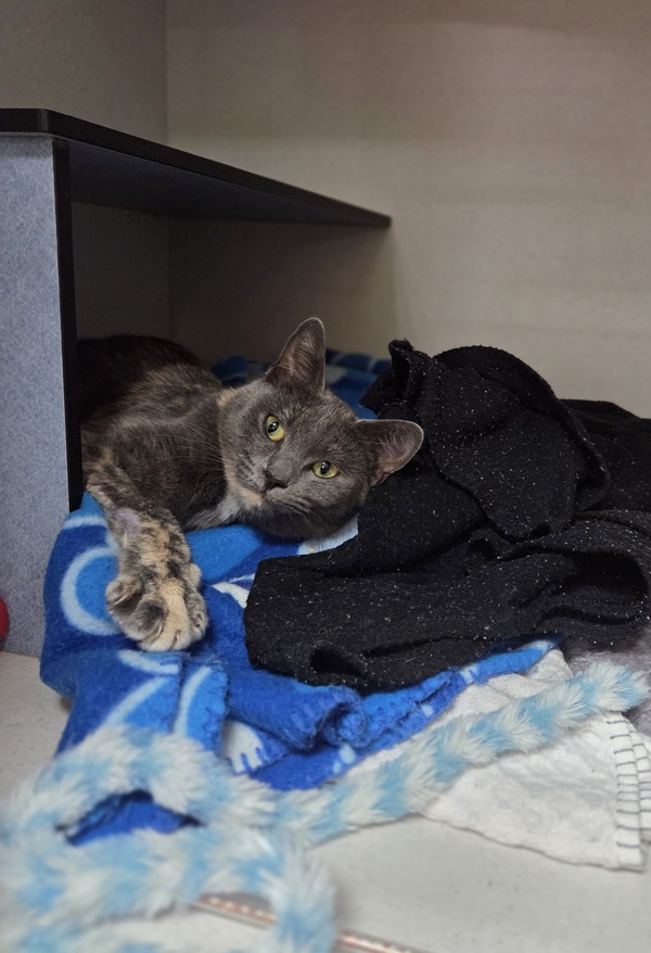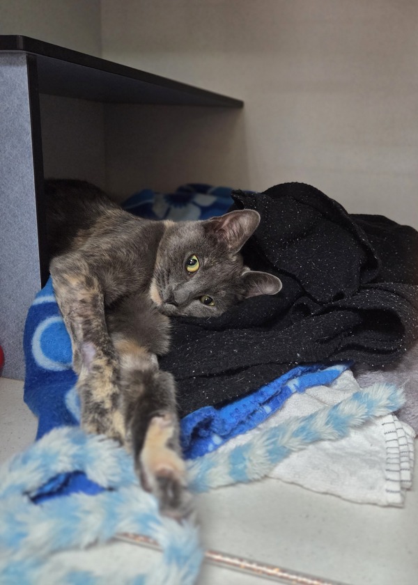 With a predictable routine, plenty of cozy resting spots, and lots of kindness, Maybelle's confidence will continue to grow. And don't be fooled by her calm nature - got toys? Scratcher trees? Maybelle absolutely has the play and zoomies you're looking for in a feline friend! With reassurance and love, this sweet girl will blossom into a content, playful, and affectionate companion who truly deserves a home where she can be cherished and enjoy the peaceful life she's earned.
