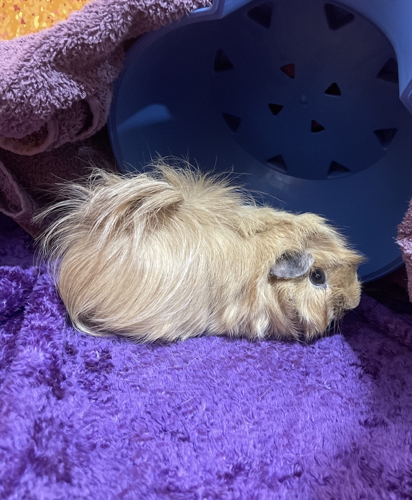 Biscuit is full of charm and character. He's the kind of guinea pig who brings energy and joy into the home - wheeking for snacks, exploring new hideouts, and watching his humans with bright curiosity. He's perfect for someone who wants a lively, engaging companion with a big personality.